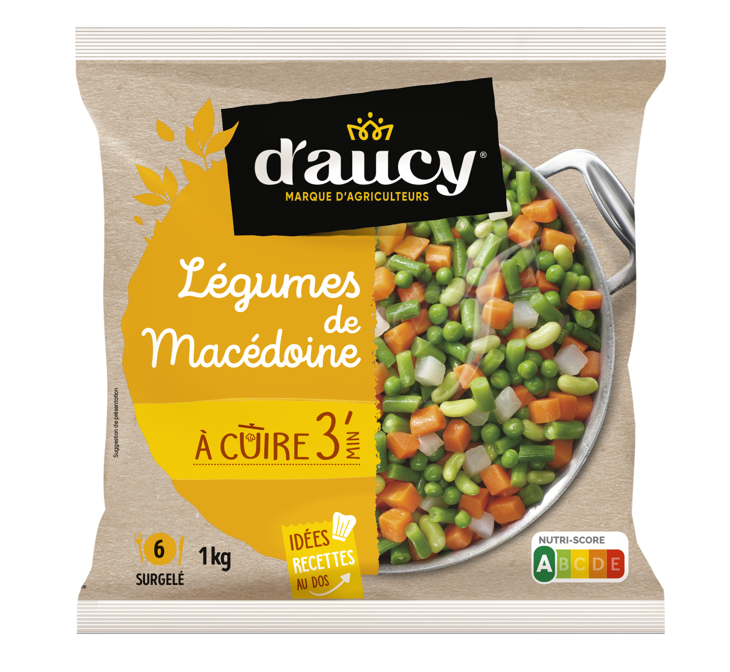 تتكون الماسيدوان التي ننتجها من خضار مزروعة في الحقول المفتوحة في فرنسا تُحصد في موسمها عندما تنضج كما ينبغي. تُجمّد للحفاظ على كامل جودتها.
