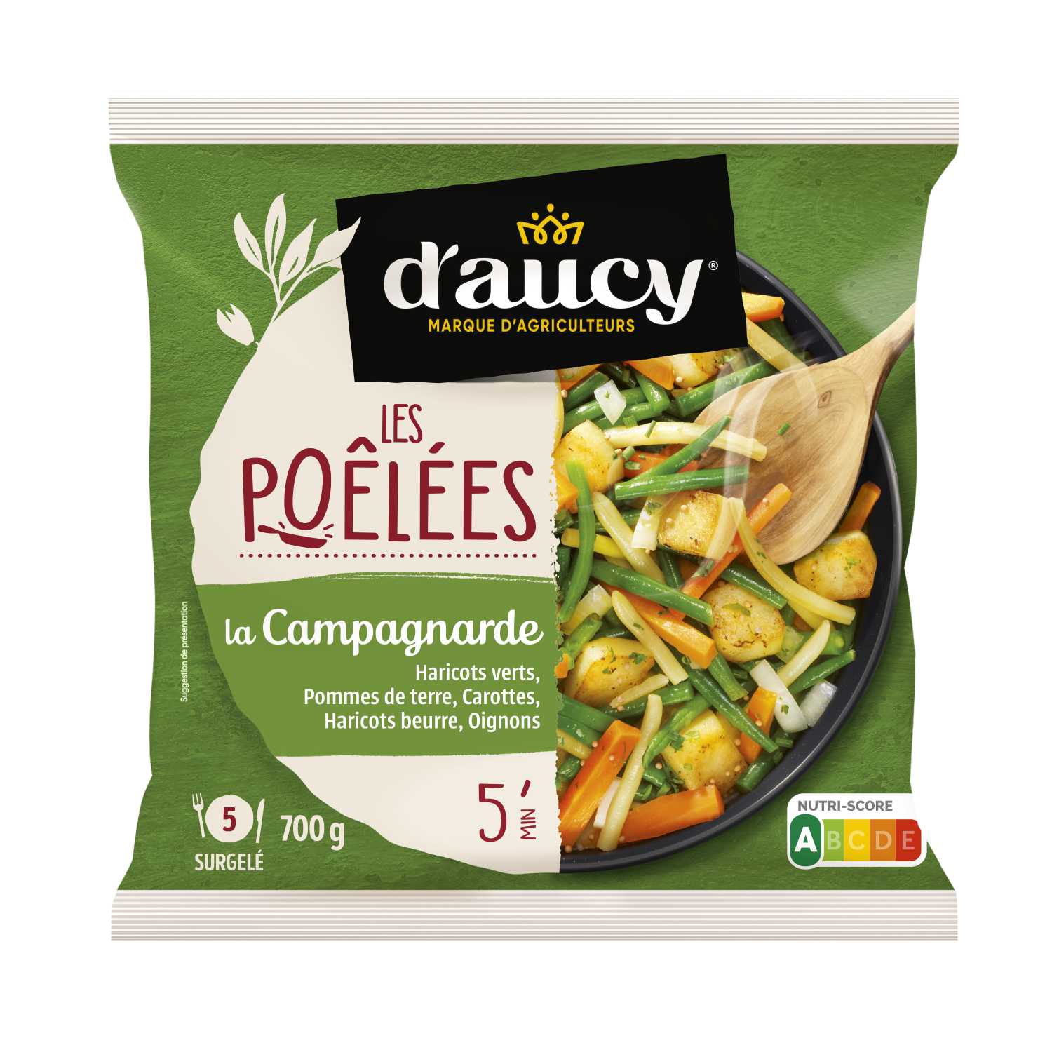 لوبيا خضراء 22%، بطاطس مقلية مسبقاً ومتبّلة 19% (بطاطس، زيت دوار الشمس، توابل: ملح، ثوم، بهارات: بابريكا، كركم، فلفل، أعشاب: بقدونس، ثوم معمر، دكستروز (قمح أو ذرة))، جزر 16%، لوبيا صفراء 14%، ماء، بصل 11%، صلصة خردل حب 1%، زيت الكولزا، نكهة طبيعية، ثوم، زبدة مركزة، ملح، بذور خردل 0,3%، عصير جزر، بقدونس، إكليل الجبل، فلفل.