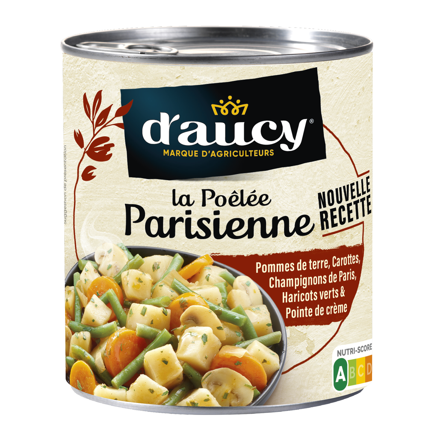 بطاطس على شكل مكعبات (39٪)، جزر على شكل حلقات (16٪)، فاصوليا خضراء مُقطّعة (14٪)، ماء، فطر باريس كامل (10٪)، لاردون مُدخَّن (3٪) (صدر خنزير، ملح، مادة مضادة للأكسدة: إريثوربات الصوديوم، مادة حافظة: نتريت الصوديوم)، شحم البط (1,2٪)، بقدونس، ملح، ثوم، نكهة طبيعية، مسحوق بصل مشوي، فلفل أبيض.