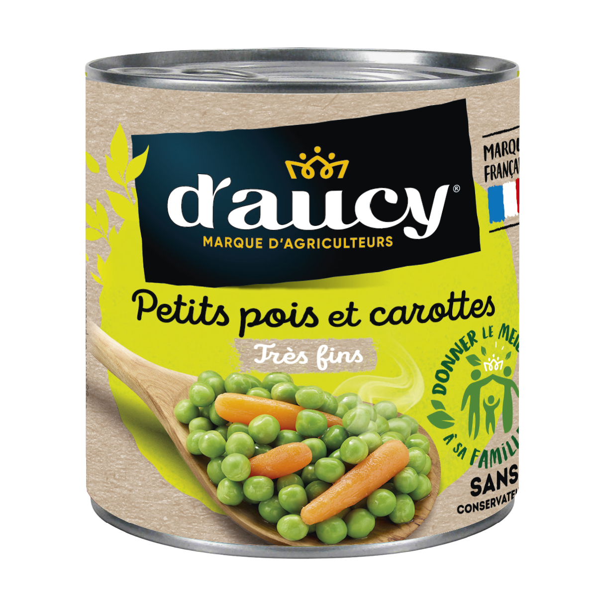 Наши зеленый горошек и морковь выращиваются на открытых полях Франции и собираются в сезон, после полного созревания. Консервирование в день сбора позволяет сохранить все качества продукта.