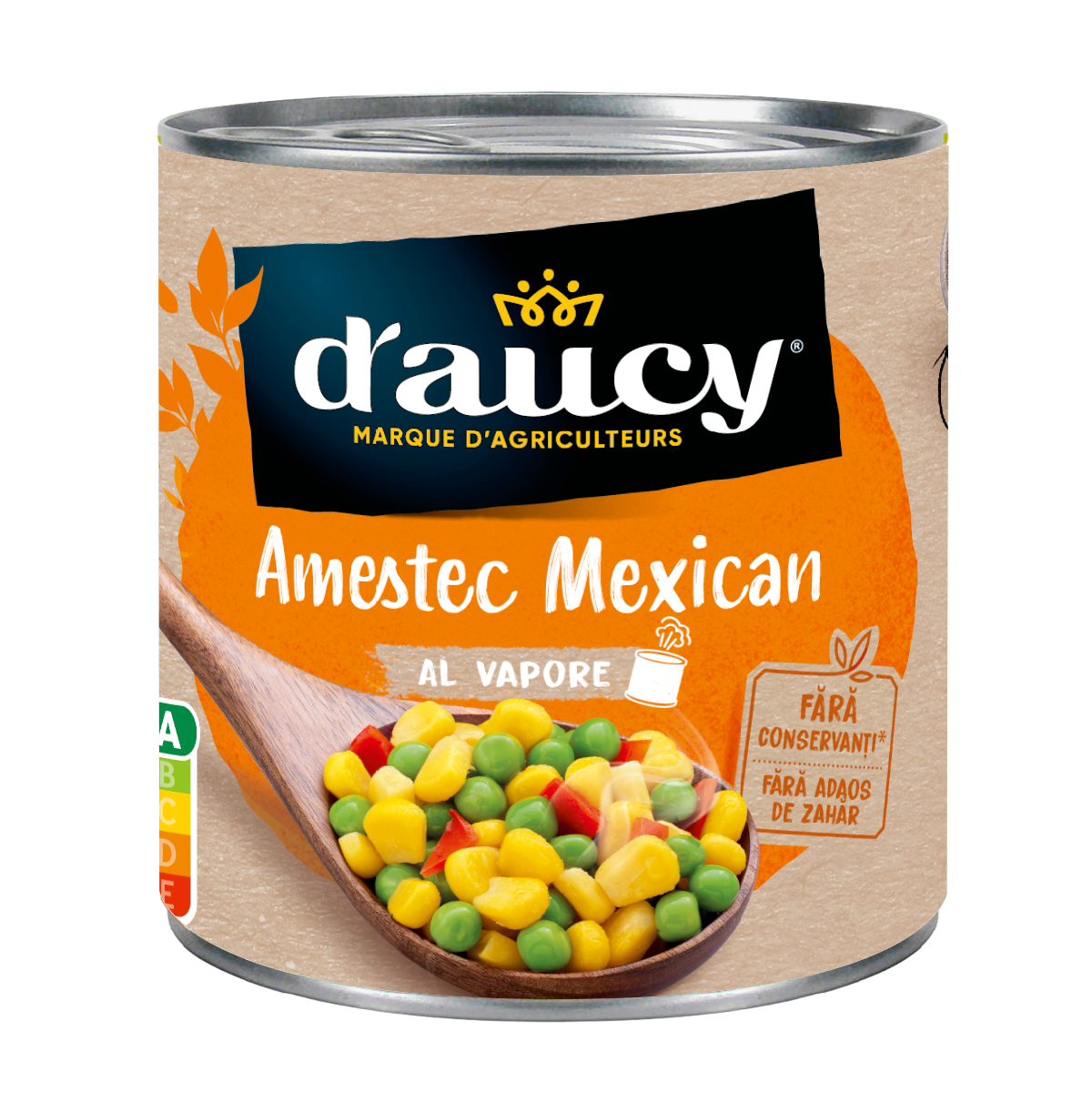 Maïs doux en grains (45%), petits pois (26%), eau, poivrons rouges (10%), sel.