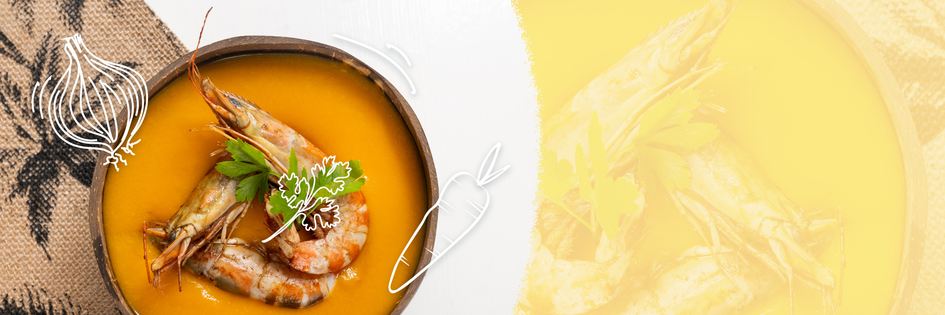 Página inicial do sítio > Ideias de Receitas > Deliciosa sopa com leite de coco e camarão